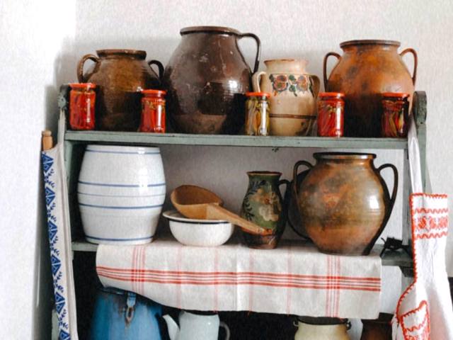 The ethnographic section presents rural antiquities: antique furniture, ceramic dishes, traditional clothes, Transcarpathian carpets, tools.