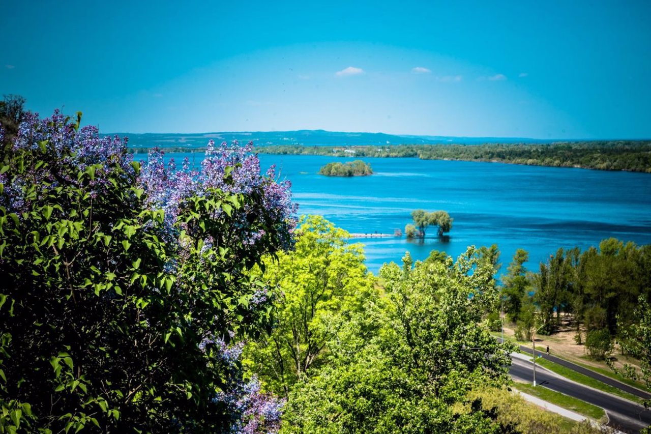 From the pier and parking lot at the foot of the mountain, a granite staircase with 392 steps leads to its top, with recreation areas and the "Lilium" fountain (1977, architect Anatoly Moshenskyi).