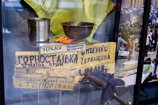 The main element of the complex should be the Revolution of Dignity National Museum on the Heavenly Hundred Heroes Alley (preparation for construction is ongoing). The temporary exhibition is available in the Information and Exhibition Center of the Maidan Museum, located on two floors of the Trade Union Building. Here you can see the original things of Maidan citizens from the time of the Revolution of Dignity, photos and videos of those events. The museum collection also includes handmade barricades, self-defense items, protest art, and more.