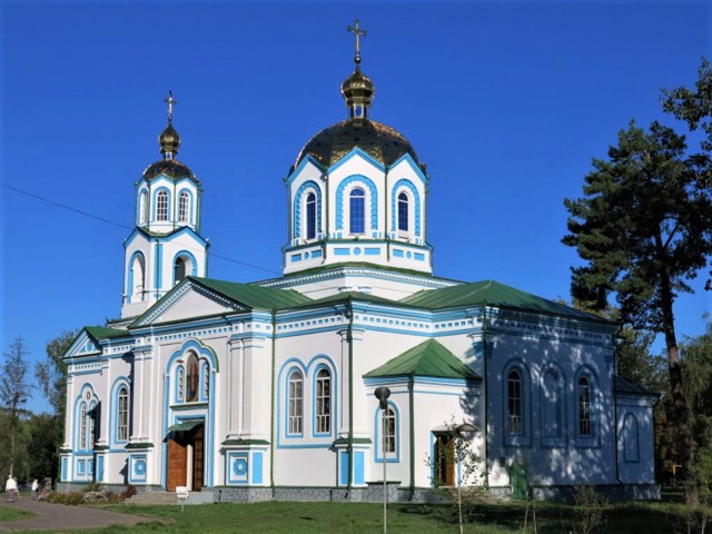 It was built in 1887 on the site of a wooden temple founded in 1648 by the Cossack colonel Matviy Hladky. The temple in the style of classicism was painted by students of Viktor Vasnetsov.