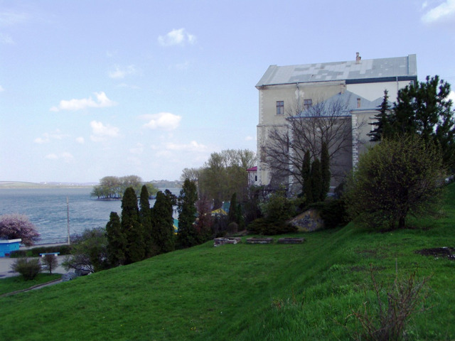 From the street the Ternopil castle building looks inconspicuous, but from the side of the lake its fortification character is well visible.