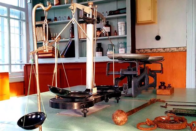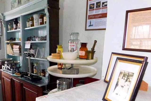 In the sales hall with stucco molding in the village around the chandelier of the 19th century, and until recently, it was possible to purchase medicines. The second hall recreates the interior of an old pharmacy laboratory - an assistant's desk, equipment for washing and drying pharmacy utensils, cabinets ...