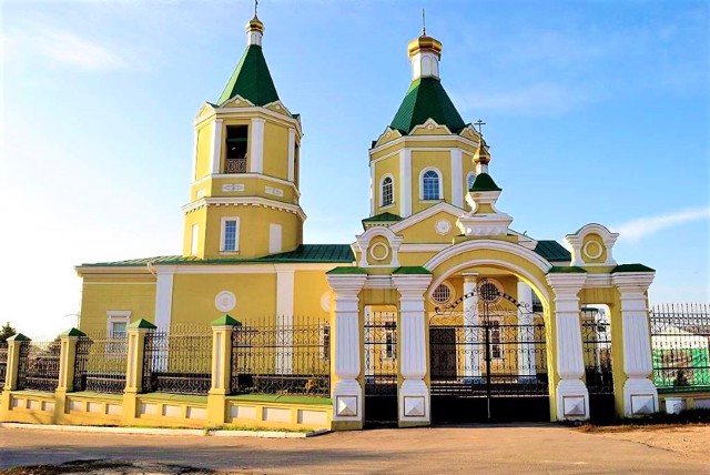 The stone church in the style of classicism was built instead of the wooden Cossack church that existed since 1650. Cross-shaped, with a strongly elongated western branch and a semicircular apse, with small square extensions.