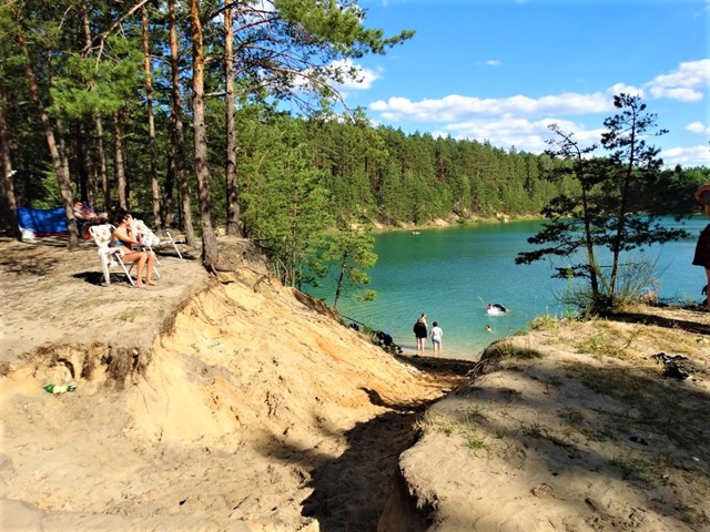 The flooded sand quarries near Oleshnia in Chernihiv region are called "blue lakes" (high-quality quartz sand is mined in Oleshnia).