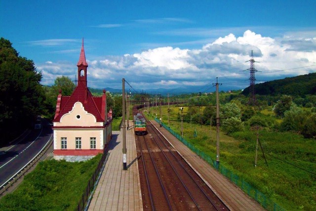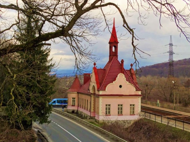 Down by the road is the railway station "Sanatorium Karpaty", which is made in the same romantic style as the palace.