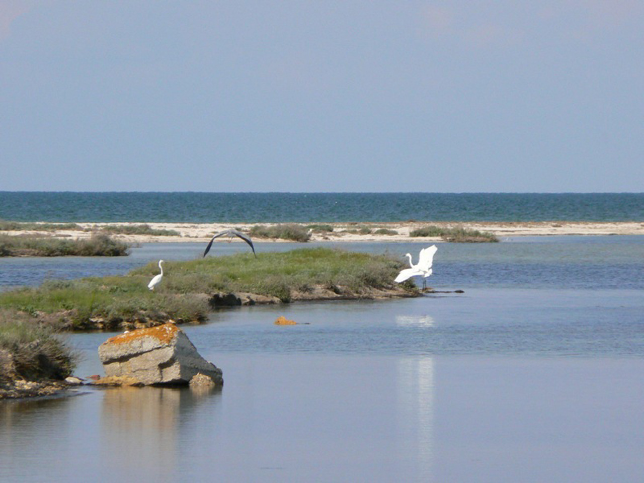 The Swan Islands in Portove are a group of 6 islands stretching 8 kilometers along the coast of the Karkinit Bay, where a huge number of migratory birds gather in spring and summer.