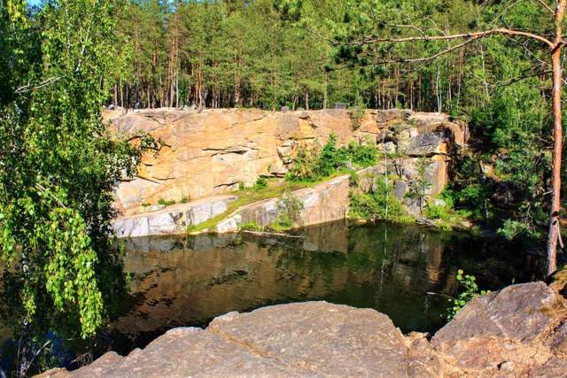 The rocky shores of the lake up to 10 meters high, overgrown with pines and birches, resemble Karelian landscapes. The water has an unusual turquoise shade. The vertical walls of the quarry with a pronounced relief attract climbers and lovers of extreme sports.