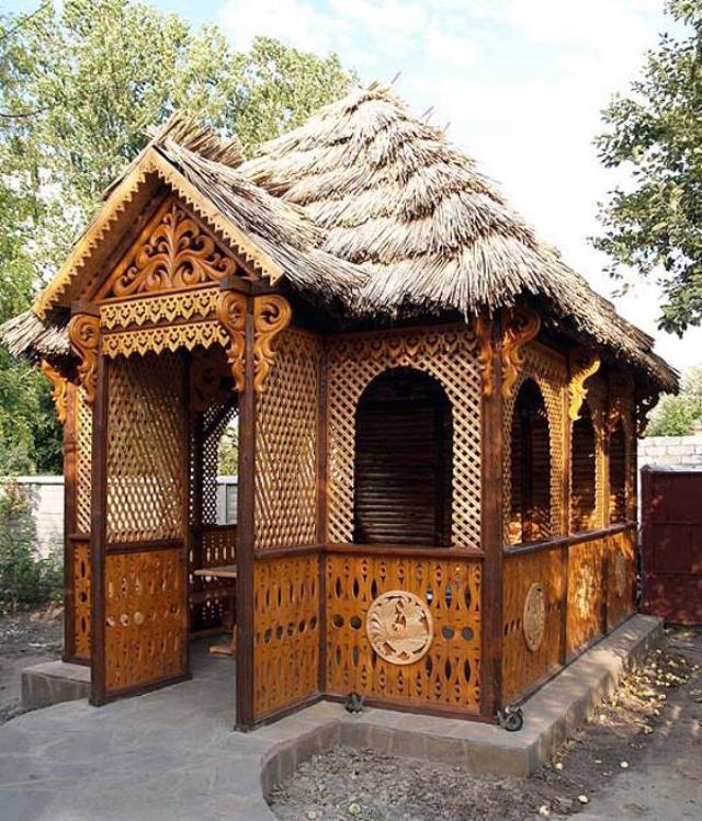 Made in an ethnic style: a Ukrainian mud house with a reed roof, a village yard fenced with mud, a wooden carved well in the yard. On the territory, you can visit an authentic Ukrainian house-museum, which recreates the lifestyle of the Ukrainian peasantry of the 18th-19th centuries. A unique collection of household items and decorative and applied art, collected by the founder of the complex, Pavlo Zektser, is on display.