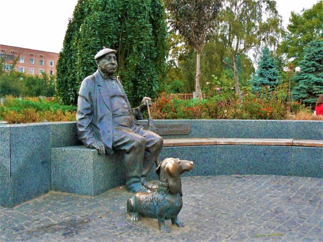In 2008, a monument to the famous Ukrainian theater and film actor Mykola Yakovchenko, a native of Pryluky, was erected on the square in front of the Brodsky Theater building.