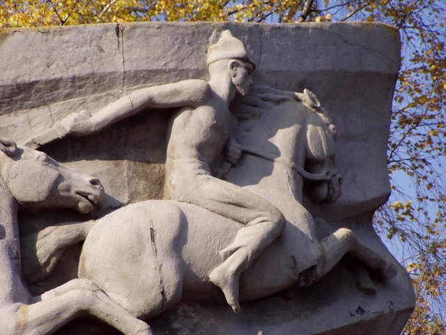 The sculptural composition "Naked Attack" was installed in the village of Mala Vilshanka during the Soviet era in memory of the textbook propaganda Soviet history, which tells about the heroism of the Red Army men Hryhoriy Kotovsky.