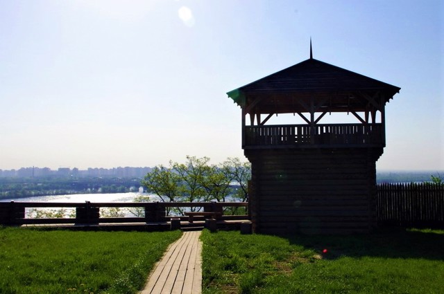 The observation deck "Red Yard" is stylized as a fortress from the time of Ancient Rus: wooden gates, palisade, watchtower, wooden platforms and a path. From here there is a wonderful view of the Dnipro, the Potona Bridge, the left bank, the Vydubytskyi Monastery and the Museum of the History of Ukraine in the Second World War.