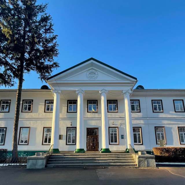 The two-story building in the style of classicism was built at the end of the 18th century on the bank of the Ros River to the west of Castles Hill. The main facade is decorated with a four-column portico of the Ionic order.