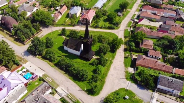 A modest one-nave stone temple with one window is strengthened from the southwest corner by a buttress. The ceiling is decorated with 60 square wooden caissons with a bright floral ornament. The name of the author Shandor Ferents is written in one of the squares.