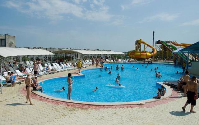 6 water slides for adults ("Bodyslide", "Aquatube" tunnel, "Multislide", "Kamikaze", "Freefall" tunnel, "Space Hole"), 4 children's slides, 5 pools with different depths, sunbeds and awnings, cozy gazebos with soft pillows, a chain of restaurants with a diverse menu of Greek cuisine, a water bar, billiards, a children's play area with animation.