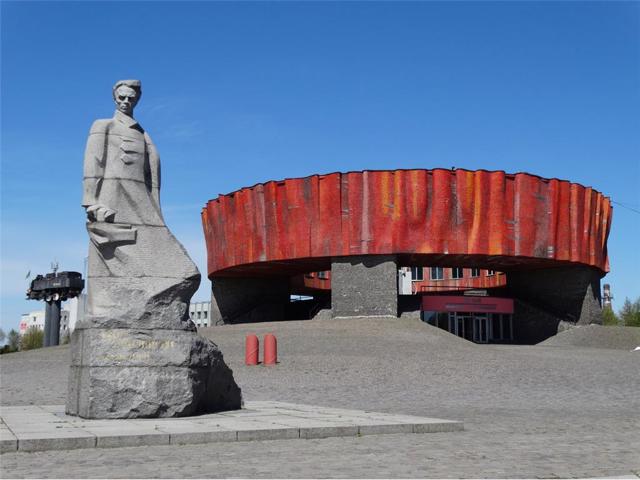 Here, on the square, stands a monumental monument to Mykola Ostrovsky.