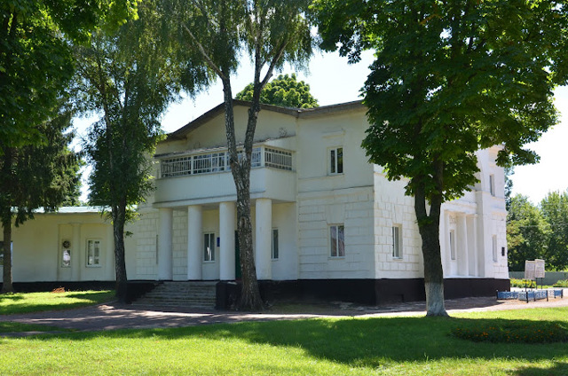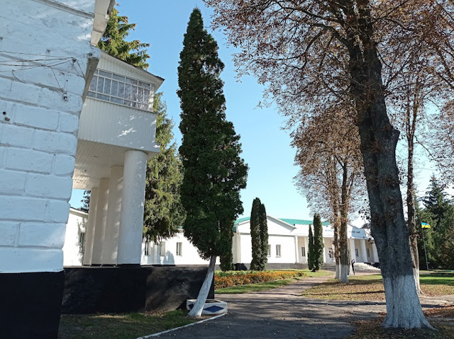 The central two-story building is connected to the two wings by arched passages. The park is laid out under the leadership of gardener Yohann Bisterfeld. The huge manor house with a wonderful garden and huge greenhouses was called one of the best manors of the Chernihiv region.