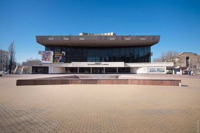The new modern building of the musical comedy theater with 1300 seats was built in 1981 according to the project of Odesa architect Henrikh Topuz.