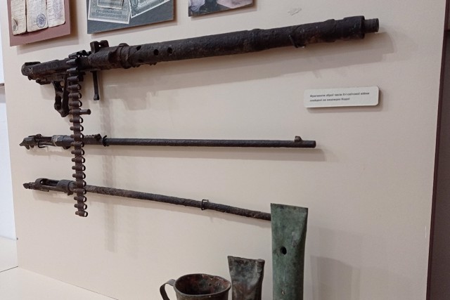 The exposition presents copies of documents related to the Haydamak movement in Ukraine, maps, samples of Cossack weapons, ancient tools of peasant work and life, materials about the history of Kodnia.