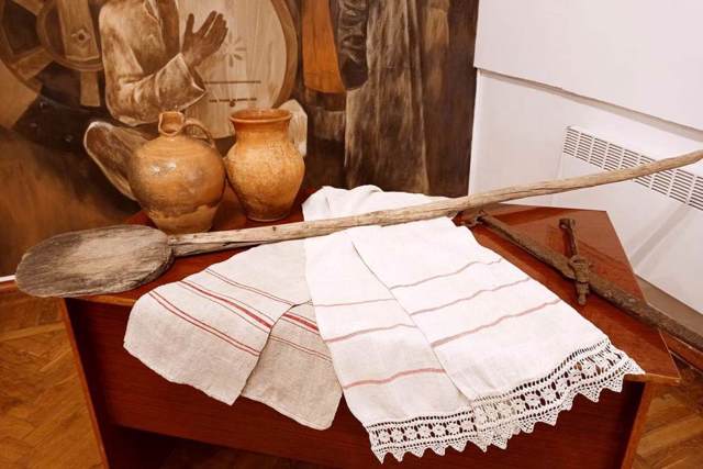 The exposition presents copies of documents related to the Haydamak movement in Ukraine, maps, samples of Cossack weapons, ancient tools of peasant work and life, ...