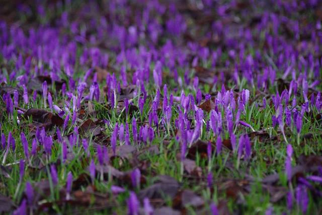 У березні на території дендропарку "Березинка" масово цвіте шафран Гейфеля (крокуси).