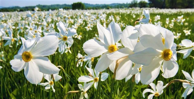 The mass flowering of Narcissus Valley usually begins in the first half of May and lasts about two weeks (the exact date depends on the weather). The earth is covered with a white flower carpet of unusual beauty, which thousands of tourists come to see.