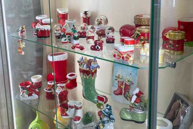 Відвідувачів зустрічає різдвяна ялинка, прикрашена іграшками-черевичками. Також можна побачити черевик-акваріум, зроблений з муранського скла.