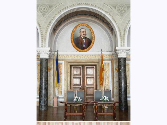 Among the rooms stands out the Synodal (Marble) Hall of the Main Building, painted by painters Epaminondas Buchevsky and Yevhen Maksymovych.