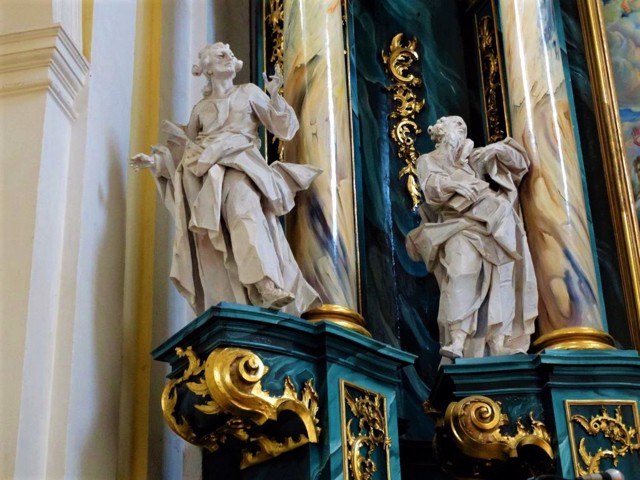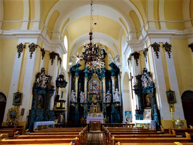 The outstanding sculptor Ivan Pinzel worked on the interior design of the Assumption Church for several years. The monumental composition of five altars includes the image of the Mother of God with the Infant Jesus, the figures of Saint John the Evangelist, Saint Yoakhim, Saint Anna, Saint Zazarius, Archangel Michael, Saint Yan Nepomuk, angels, allegorical figures of Swiftness and Love, and the composition of the Glory of God.