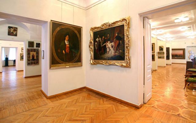 Also presented are the works of famous artists-travelers: Shyshkin, Kuyindzhi, Levitan, Savrasov. The masterpieces of painting of the late XIX - early XX century include the works of Vasnetsov, Serov, Kotarbinskyi, Ayvazovskyi.