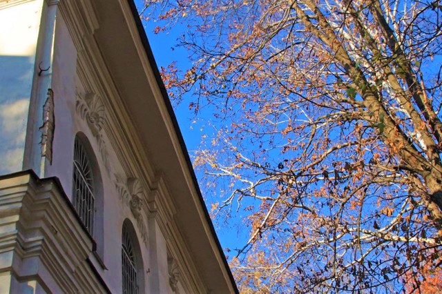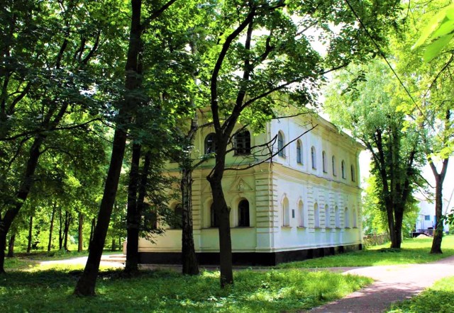 The two-story building of the Regimental Office is located in Kozelets in the park behind the Cathedral of the Nativity of the Virgin.