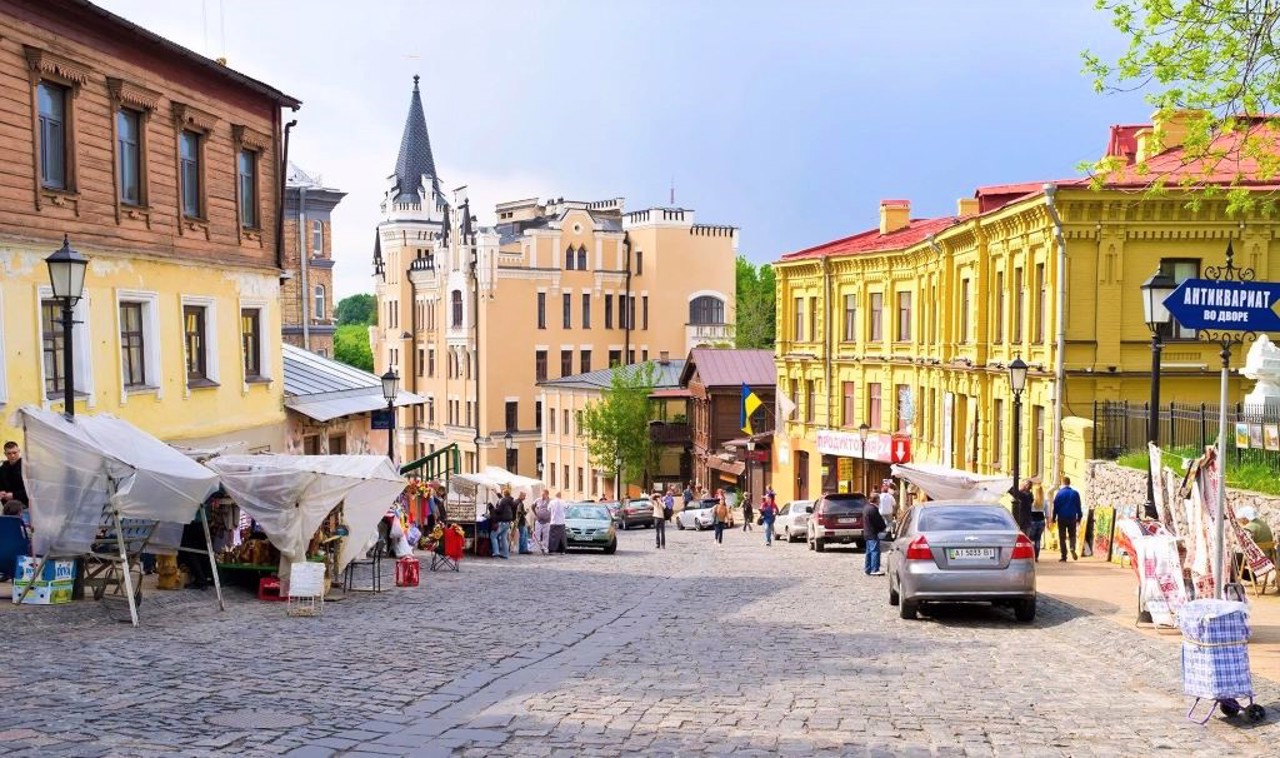 Мощена грубим каменем дорога круто звивається між старими одно-двоповерховими будинками. Це колоритне місце, що зберігає дух старого Києва, уподобане художниками та торговцями сувенірами, тут завжди багато туристів.