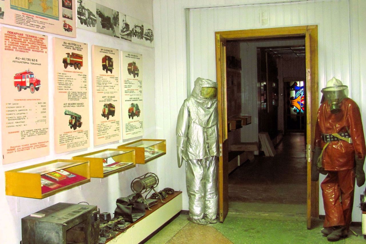 Експозиція поділена на тематичні розділи: "Історія розвитку пожежної охорони України та міста Ізюм", "Автоматизація технологічних процесів. Вогнезахист матеріалів і конструкцій", "Державний пожежний нагляд. Нормативно-технічна робота. Протипожежна пропаганда", "Охорона жнив", "Розвиток пожежної техніки в Україні. Сучасні пожежні автомобілі", "Служба, навчання та бойова робота пожежної охорони", "Автоматичні засоби виявлення та гасіння пожеж", "Цивільний захист. Наслідки пожеж".