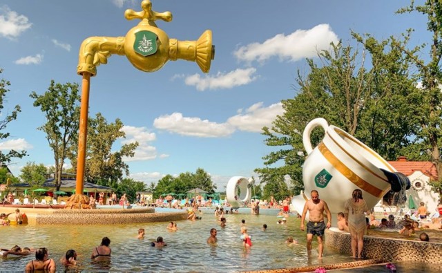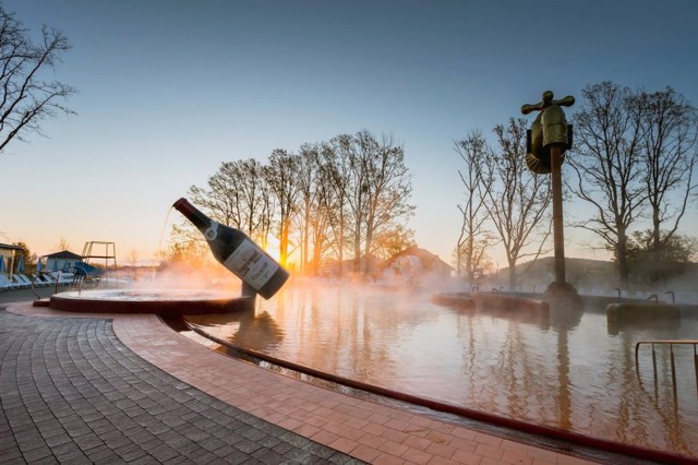 Термальна вода піднімається зі свердловини завглибшки 1190 метрів і потрапляє до басейну за температури 41 градус. Мутна, солона на смак вода має жовтуватий відтінок завдяки надлишку заліза. Купання в ній сприяє лікуванню захворювань опорно-рухового апарату, серцево-судинної системи, периферичної нервової системи, периферичних судин та міліарних систем.