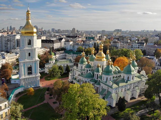 Прекрасний 19-купольний собор Святої Софії в Києві - найдавніша архітектурна пам'ятка Русі, один з найбільших християнських храмів свого часу, об'єкт світової культурної спадщини ЮНЕСКО.