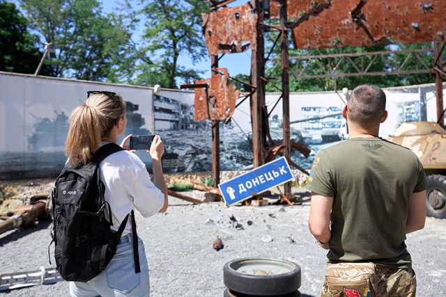 На вуличній експозиції "Шляхами Донбасу" просто неба виставлено понад 400 експонатів, що є символами війни: типовий залізобетонний блокпост, зенітна установка ЗУ-23-2, карета швидкої допомоги, бойова машина піхоти БМП-2, б ...