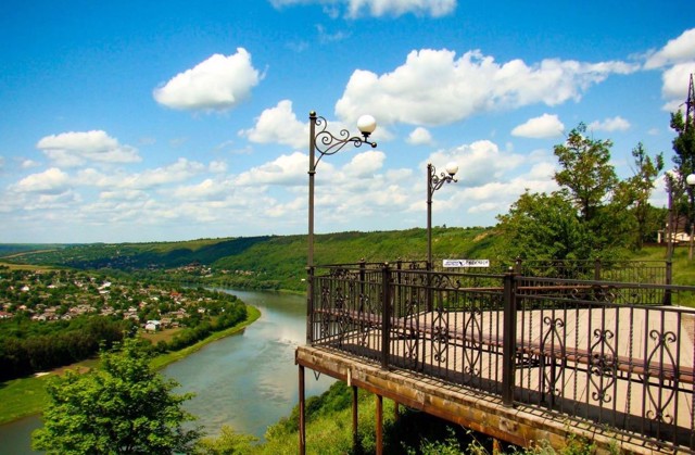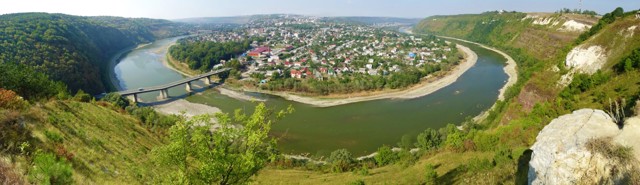 Найвражаючий вид на місто, з трьох сторін охопленого широкою стрічкою Дністра, відкривається з протилежного високого берега річки, з села Хрещатик.