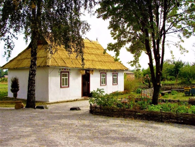 Музейная хата воспроизводит сельский быт XVIII-XIX веков, традиционными элементами интерьера которой являются печь, красный угол, шест для одежды, стол, скамьи, кровать, колыбель для ребенка.