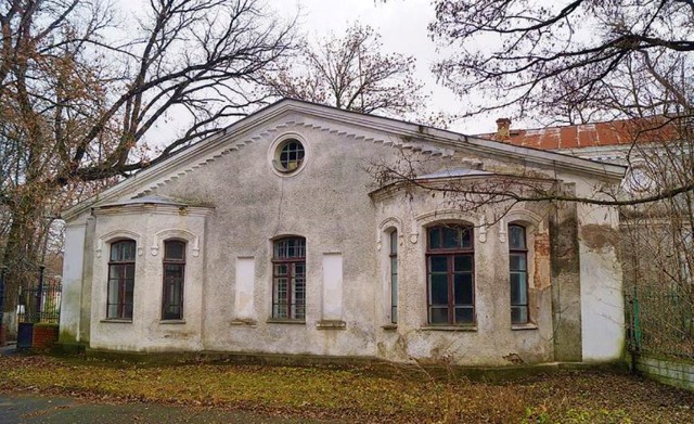 Большую двухэтажную школу построил в 1906-1911 годах за свой счет граф Михаил Толстой, проживавший с семьей в Онуфриевке. Здание из красного кирпича выполнено в стиле эклектики с элементами классицизма и модерна, украшено коваными элементами. Сохранилась гранитная лестница, кованые перила, старинный кафель на полу, оригинальный рельефный декор.