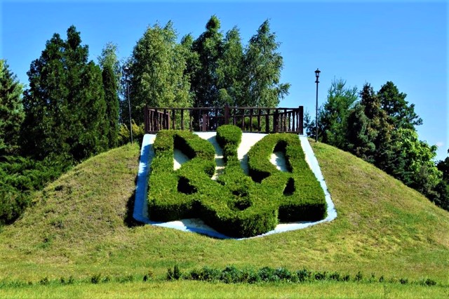 У входа в Клесовский дендропарк посетителей встречает огромный герб Украины из шаровидных туй.