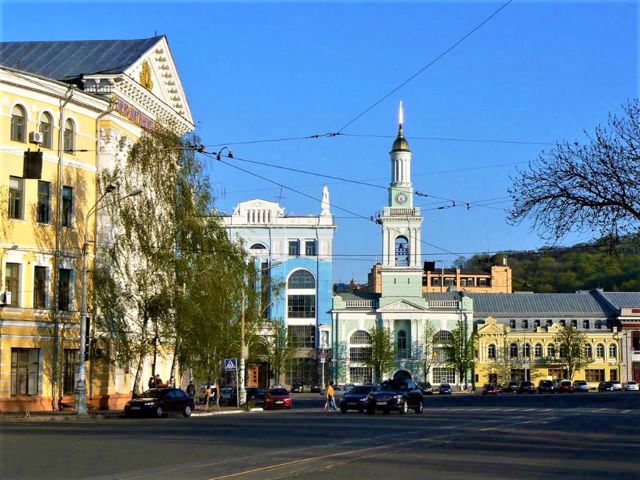 Стройная колокольня греческой церкви Святой Екатерины является главной доминантой Контрактовой площади.