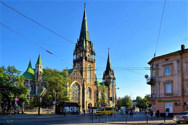 Церковь Святых Ольги и Елизаветы - самый высокий львовский храм (85 метров), соперничающий по высоте с собором Святого Юра. Ранее - церковь Святой Елизаветы Венгерской.