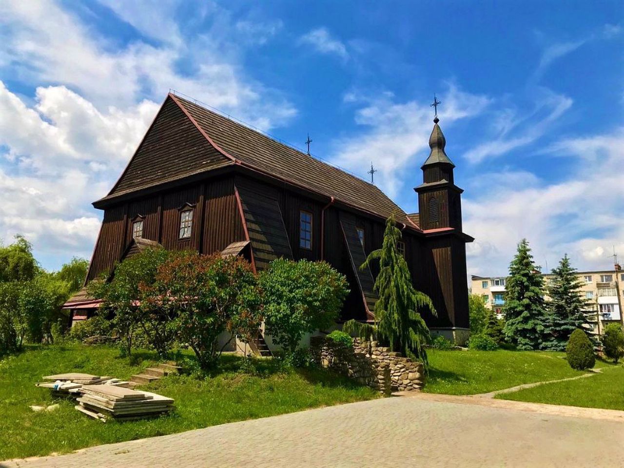 В 1996 г. на месте бывшего автопарка появился новый католический храм - перевезенный из села Вишенки костел Успения Пресвятой Богородицы 1771 года постройки. Это единственный двухбашенный деревянный католический храм на Волыни. Освящение состоялось в 1996 году.