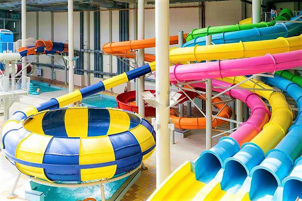На 4 поверхах розміщено 5 басейнів, джакузі, SPA-зона, сауни, 9 гірок, велика дитяча зона, бари та ресторани, зони відпочинку. Використовується обладнання від канадського виробника Whitewaters. Найдовша і найшвидша гірка "Майстер бластер" має довжину 200 метрів. Інші гірки: "Віраж", "Цунамі", "Змійка", "Космічний вир" та "Мультислайд" (загальна протяжність 1 кілометр). Хвильовий басейн площею 550 квадратних метрів.