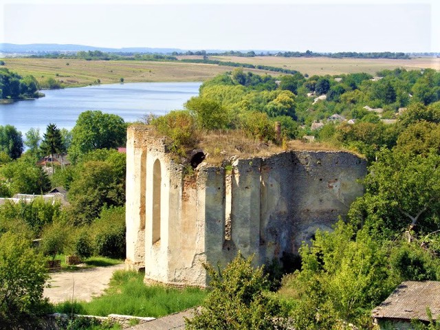 Руины костела святой Троицы находятся рядом с Меджибожским замком - на возвышенности, укрепленной каменной опорной стеной.