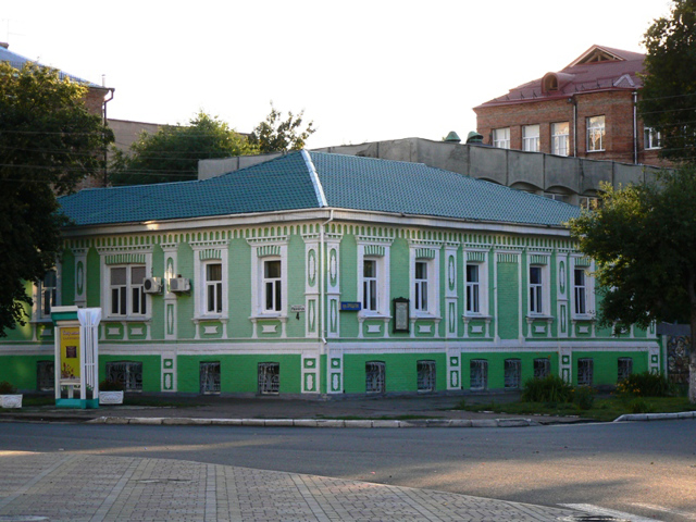 Будівля належить до так званих "зразкових будинків", автором яких був архітектор Луїджі Руска. На початку ХІХ століття він випустив альбом "Зразкові фасади", за якими велася забудова багатьох українських міст. З моменту побудови збереглися не тільки стіни та перекриття, а й столярня, і навіть фурнітура з вензелями фірми "М. і Г. Бабашов. 1850".