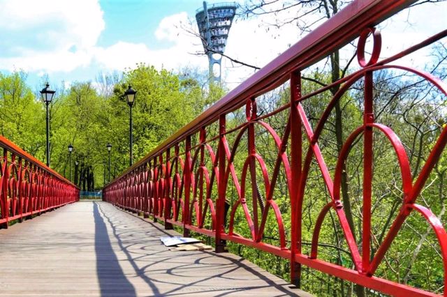 Пешеходный Парковый мост (Мост влюбленных) над Аллеей Магдебургского права в Киеве соединяет Крещатый (Купеческий) парк с Городским (Царским) парком.