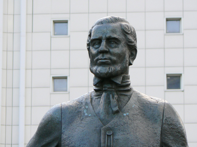 Памятник английскому промышленнику Джону Джеймсу Юзу, основателю Юзовки (нынешний Донецк), создателю донецкой металлургической промышленности, на которой теперь базируется экономическая мощь Донбасса.