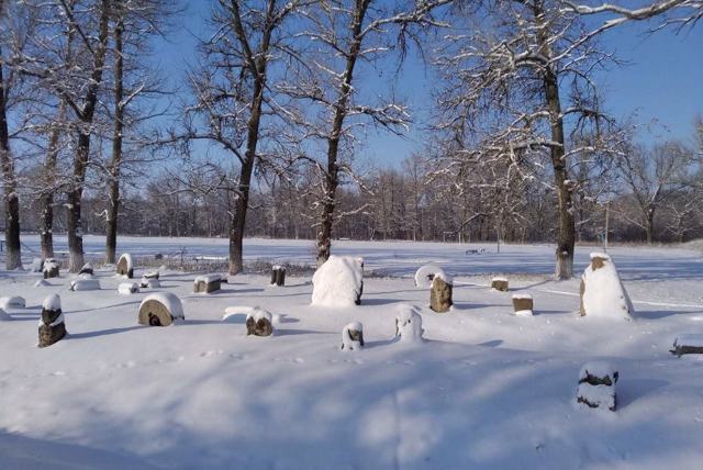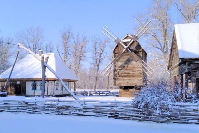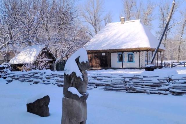 Комплекс деревянных построек воспроизводит сельский двор XIX века на Слобожанщине: типичный слобожанский жилой дом под камышовой крышей, ветряная мельница с деревянными механизмами, кладовая и кузница с орудиями труда, колодец, ульи.