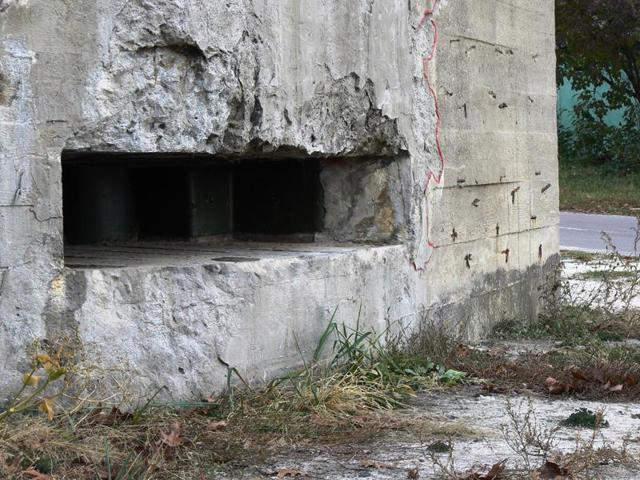 Сооружение из толстого армированного бетона представляет собой одноэтажный пулеметный ДОТ фронтального огня на 4 амбразуры (тип Б).