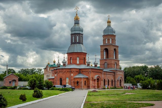 Первоначально носила имя Святых Петра и Павла. Кирпичный храм на территории быв. военного городка сооружен по типовому проекту в византийском стиле, с одним верхом и трехъярусной колокольней, которая была пристроена в 1906 году.